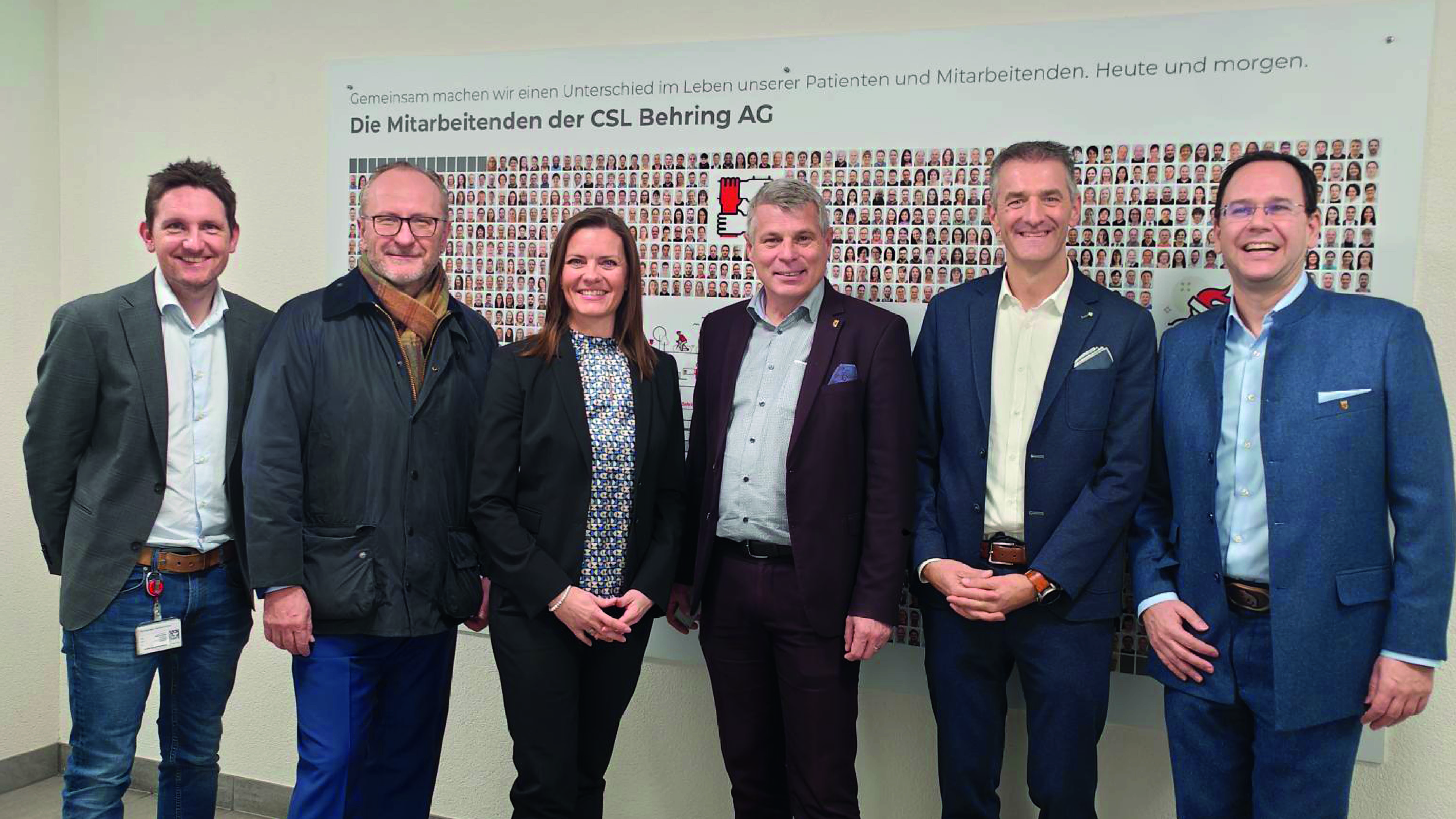 Christoph Ammann (Executive Council Bern), Dr. Sebastian Friess (Head of the Office for Economic Affairs and Director of Economic Development for the Canton of Bern), and André Nietlisbach (Secretary General) visited CSL Behring's production site and our packaging facility in Bern. During the visit, our guests learned more about our production processes and innovative procedures.