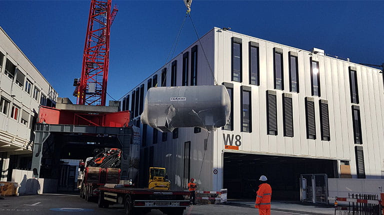 Successful tank transport: the three biggest tanks (80’000 litres and 12 tons (tare weight)) were installed at the beginning of this year. The rebuilding of the CIP (Cleaning in Place) station in the GBB building was implemented between Christmas and New Year. Further information are provided below.